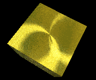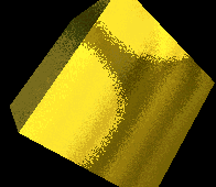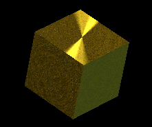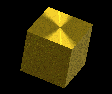 Für das restliche aus der Umgebung stammende Licht wird eine EnvironmentMap-Funktion eingesetzt, die mittels des reflektierten Sichtvektors ausgelesen wird. Da es sich hierbei um eine spekulare Reflexion handelt, wird der ermittelte Lichtwert ebenfalls mit der Fresnel-Materialfarbe multipliziert. Für den Streukegel der Reflexion wird eine leicht berechenbare Näherung angewandt: Es wird der Winkel betrachtet, innerhalb dessen ein vorgegebener Anteil der spekularen Reflexion liegt. Dieser bildet sich (bei isotroper Reflexion) auf der durch alle möglichen Reflexionsvektoren gebildeten Halbkugel als Kreis ab. Für hohe Spekularexponenten wird der Winkel klein, so daß der Durchmesser des Kreises mit dem Winkel in erster Näherung identisch ist. Vergleicht man ein Quadrat mit Kantenlänge d und einen Kreises mit Durchmesser d miteinander, so ergibt sich ein Verhältnis von 1 zu Pi/4 zu 1 (rund 0.79) zwischen Quadrat- und Kreisfläche. Dies bedeutet, für einen Kreis mit Durchmesser d auf der Halbkugel, welcher rund 79% der spekularen Reflexion umfaßt, besteht dasselbe Verhältnis zwischen spekularer Reflexion innerhalb und außerhalb des Kreises wie für den Inkreis eines Quadrats mit demselbem Mittelpunkt und Kantenlänge d, welches die gesamte spekulare Reflexion aufnehmen würde. Somit kann dieses Quadrat zur Simulation der spekularen Streuung herangezogen werden.