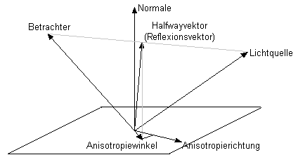 ergibt somit eine isotrop reflektierende Oberfläche. Um auch komplexere Anisotropiestrukturen darzustellen kann der Tangentenvektor mittels einer Anisotropietextur in der Ebene gedreht werden. Die Textur speichert dabei direkt den Wert der gedrehten Tangente, ausgedrückt im zweidimensionalen Tangente-Binormale-Koordinatensystem.