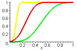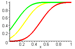 Die bei Annahme mehrerer Schichten aus gleichverteilten Sprühtropfen entstehende S-Kurve als Zufallsfunktion läßt sich näherungsweise über die in der Shadersprache schon enthaltene Smoothstep-Funktion darstellen. Bei dieser handelt sich dabei praktisch um eine Hermite-Interpolation, welche einen Eingabewert x auf das Interval [a..b] begrenzt und anschließend den Wert Smoothstep(a,b,x) = 3 * y2 - 2 * y3 mit y = (x - a) / (b - a) zurückgibt. Die entsprechenden Varianten für konstante und adaptive Korrektur sind damit:
